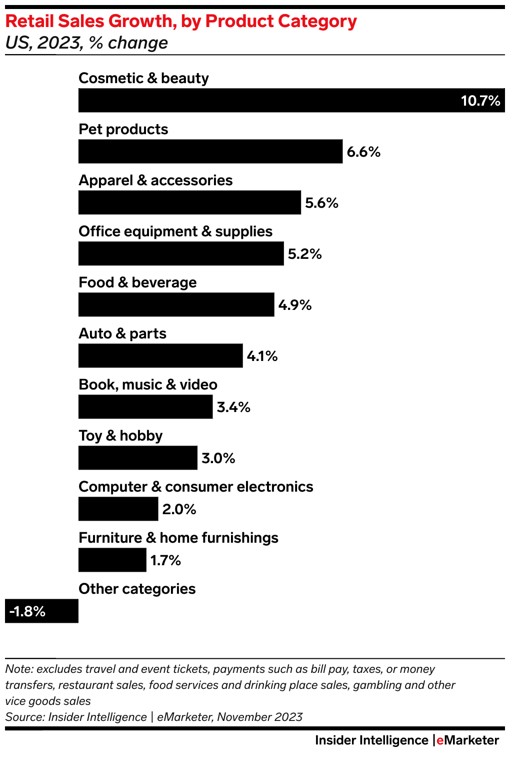重要发现:口红效应仍然强劲。今年化妆品和美容产品的销售额将增长 10.7%,比我们跟踪的任何其他类别都要快。