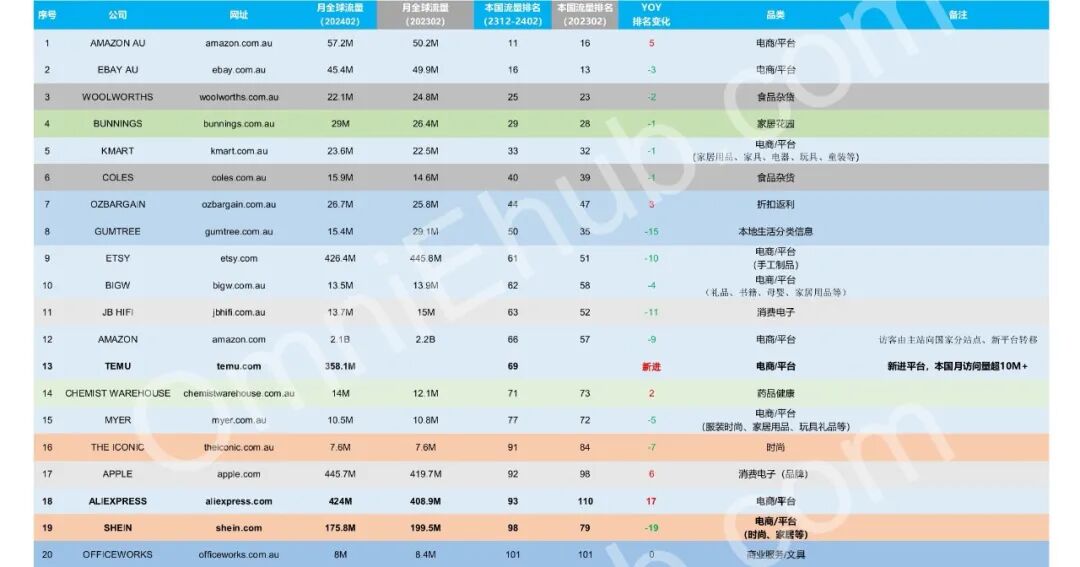 同时,我们也见证了亚马逊用了 6 年多时间超越 eBay 成为澳大利亚流量榜首的电商平台,跟踪分析了拼多多出海 TEMU 平台入场澳大利亚时候各个平台的竞争态势。