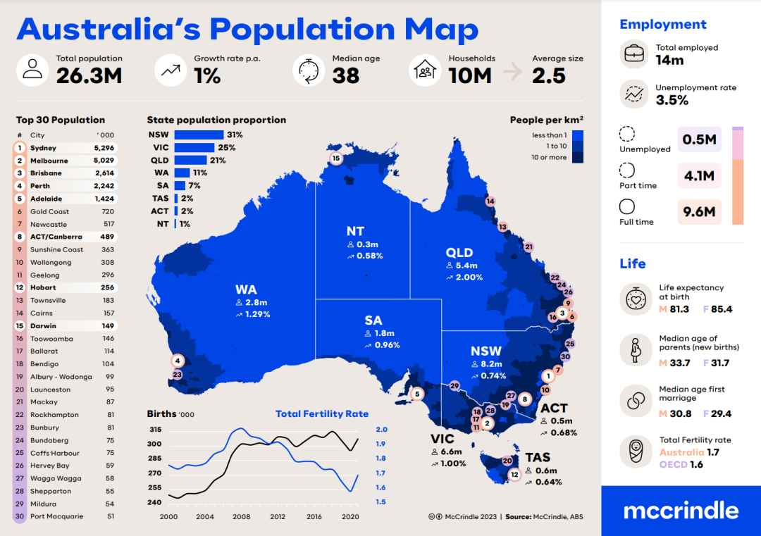 图二:澳大利亚人口分布地图2023 来源:mccrindle