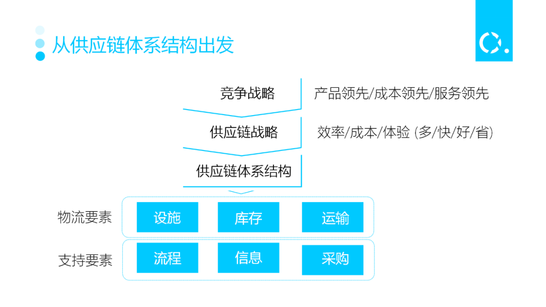 RC:这些年,个人一直在思考,物流服务到底终极目标是什么?或者说,对于卖家来说,什么是物流服务商提供的“价值”?这样说来,物流规划最终是要站在卖家角度来思考解决卖家的问题。从理念上来说,竞争战略决定供应链战略,而供应链战略决定了供应链结构和物流要素的组合。这其中有两组重要的公式是我们无法忽略的,我把它称为“供应链思维”,其中既有乘法思维,也有加法思维,而乘法思维又比加法思维更显重要。这也是我个人认为的具有“第一性原理”性质的公式。