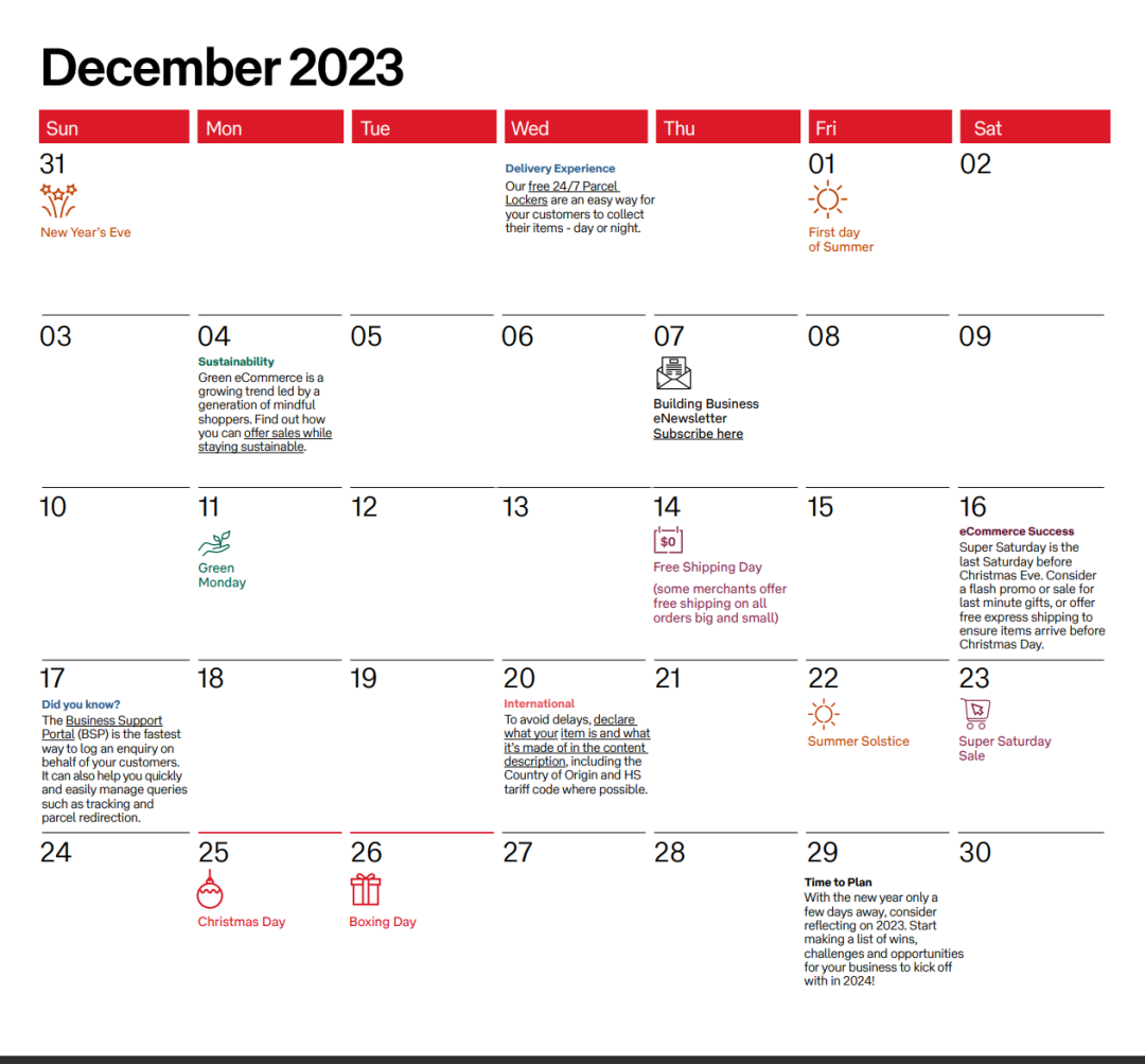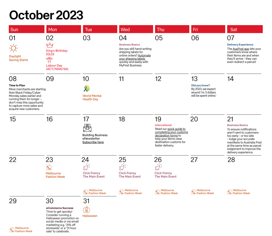 附:澳洲电商爆单日历(来源:澳大利亚邮政)