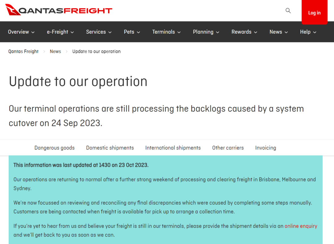 过去的一个月,很多做澳洲市场的小伙伴,着实提前体验了一下爆仓的感受。这个爆仓倒不是由于出口货量暴涨造成的,而是澳大利亚国营航空公司澳航内部系统升级的BUG造成,自9月24日至今天整整一个月,根据官方的信息仍需一周时间来清理布里斯班、墨尔本和悉尼的积压和处理差异。这也为我们做澳洲市场的卖家提了一个醒,应对旺季需要提前做好物流预案。